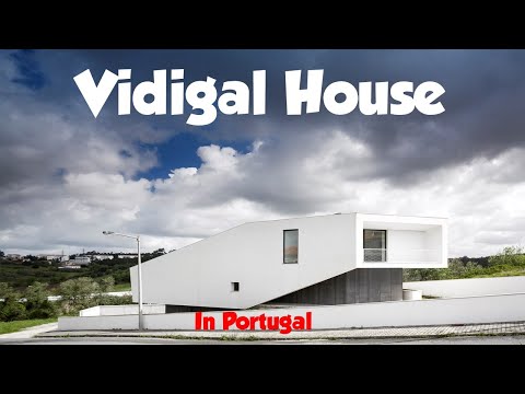 This single-family house is located on a triangular-like plot, next to a highway that crosses an extensive green area, near the city of Leiria. The house consists of two volumes that intersect as a closed angle, following the shape of the plot. The larger volume has its geometry marked by oblique lines, which rise from the ground.